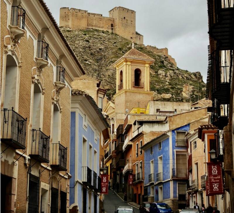Uiteindelijk werd het aan het eind van de middag toch nog droog zodat we , wel met de regenjassen aan, naar het stadje zijn gelopen. Mula heeft een klein historisch centrum met wat mooie gebouwen en kerken. We zijn in een kerk geweest maar het interieur was sober, geen roomse pracht en praal. Je kon ook boven naar het kasteel klimmen maar dat was niet geopend vanmiddag werd ons verteld in het offiçina de turismo. Daar vertelden ze ook dat er belangrijke mensen op bezoek waren in het kader van een Europees project. Nu zie je in Spanje altijd al veel blauw op straat, al dan niet in een auto, lopend of op een scooter, nu waren er extra veel aanwezig. En hoewel het een klein historisch centrum was, waren we blij dat we even een frisse neus konden halen en flink de benen konden strekken vanwege de soms steile straatjes.