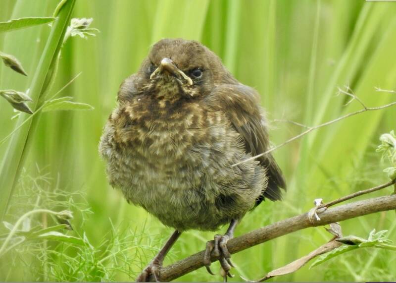2 staartloze vogels. Een jonge merel heeft nog geen staart.