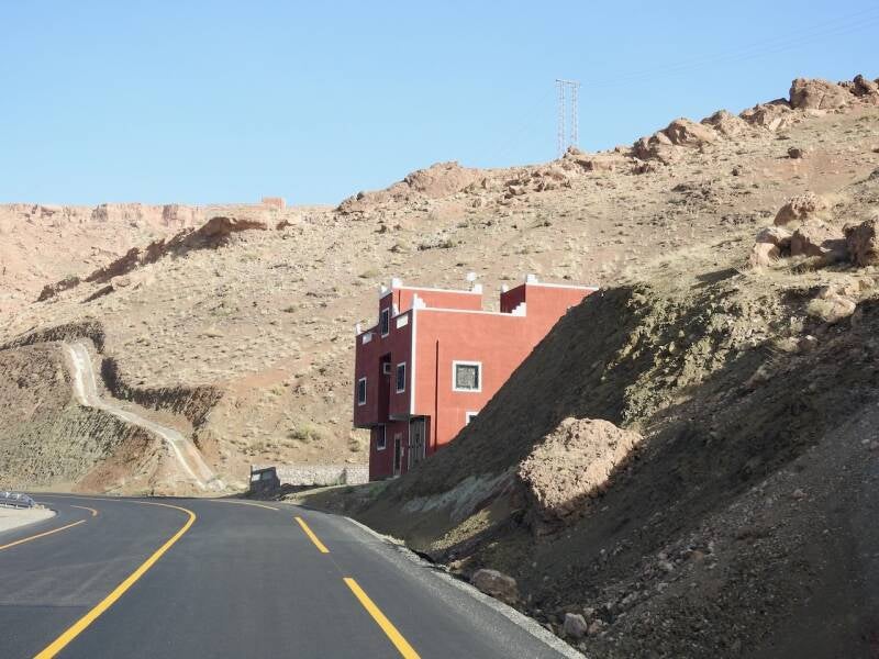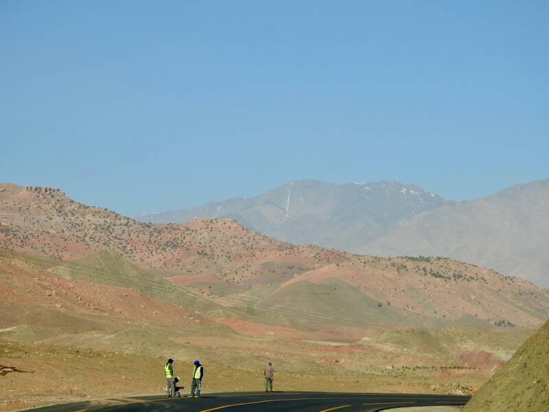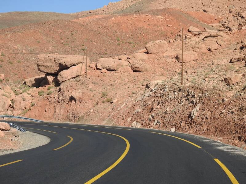 De afdaling van de col de Tiz-"N-Tichka is begonnen