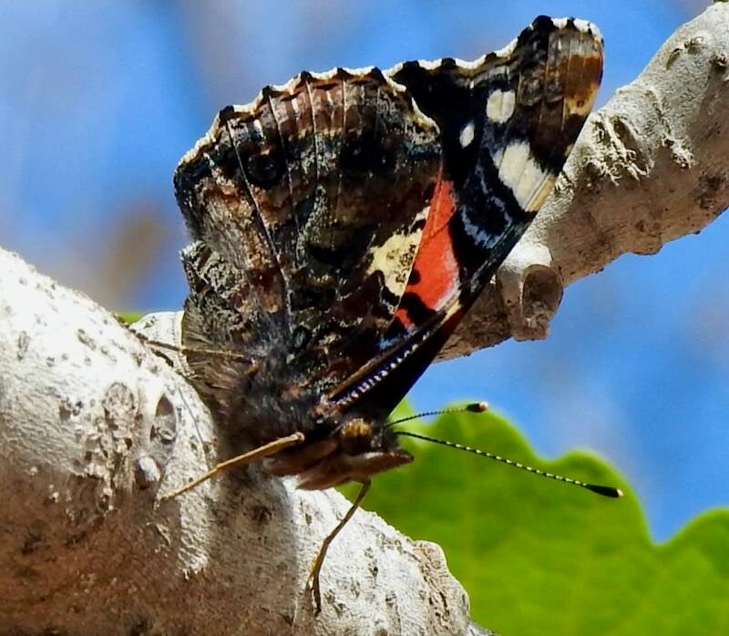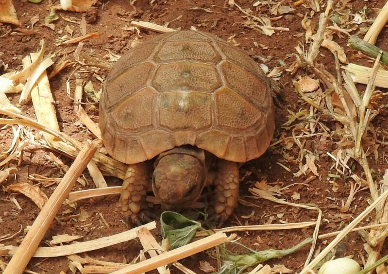 Er vliegen vlinders, er bloeien wat bloemen en je hoort hier Atlasvinken en het prut prut geluid van overvliegende bijeneters.. Het huis wat bij deze camping hoort beschikt over 2 mooie binnentuinen met diverse bloeiende struiken, er zijn wat schildpadjes met jongen. Wat wat minder bij deze vreedzame sfeer past is dat er af en toe een vliegtuig overvliegt, die levert dan weer toeristen af in Marrakech die de highlights gaan bezoeken, onderweg kwamen we zeker 50 kleine toeristenbussen en 6 touringcars tegen die de pas omhoog klommen terwijl wij aan de afdaling bezig waren. Toen we op de camping kwamen was het droog geworden en nadat het in de mist maar 9 graden was werd het ook warmer toen de zon hier doorbrak.