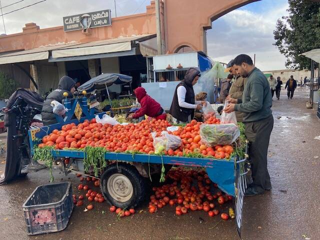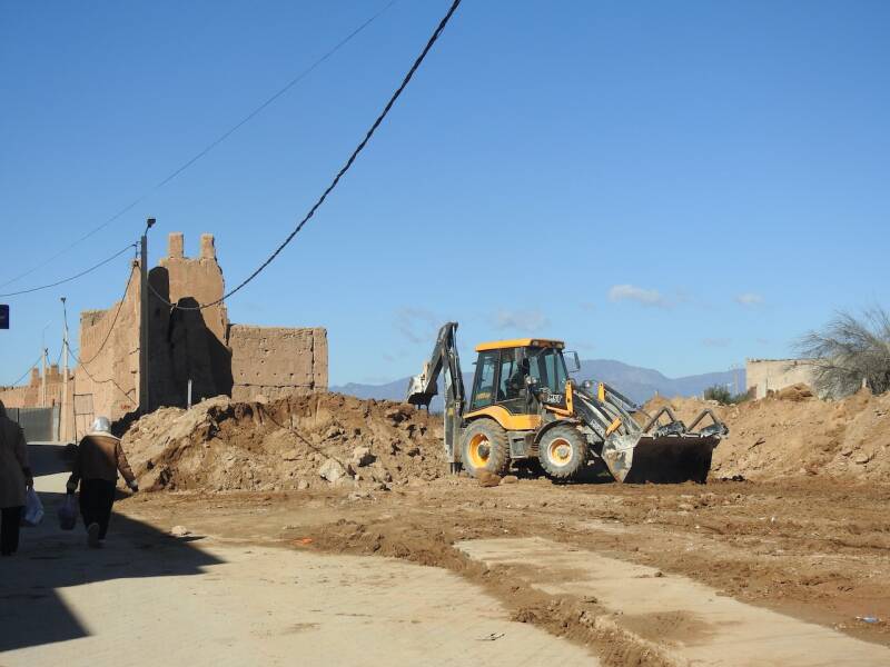 We zijn een stukje langs de oude stadsmuren van Taroudant ( 16e eeuw) gewandeld. Ze omringen de oude medina en zijn 8 km lang. . De muren en ook wel wat gebouwen in Taroudant zijn door de aardbeving van 8 sept 2023 deels beschadigd en sommige stukken zijn geheel ingestort. De restauratiewerkzaamheden zijn in volle gang , de gerestaureerde muren zijn nu nog grijs i.p.v. bruin. We zijn door de poort Bab Lakhmiss gewandeld waarnaast de voormalige cp lag. Vanwege restauratiewerkzaamheden is de cp verdwenen, evenals een stuk muur , het is nu een bouwput, jammer.