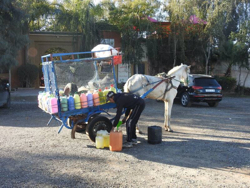 Vroeger, tot zo’n 12 jaar geleden , kon je bij gasfabrieken in Marokko propaan laten vullen, dat werd toen verboden. Je kunt nu ook op een camping ten zuiden van Agadir je fles laten vullen met propaan. Maar dat hebben we één keer gedaan, we vonden de campingeigenaar een arrogante Fransman en hij vraagt een flinke prijs.