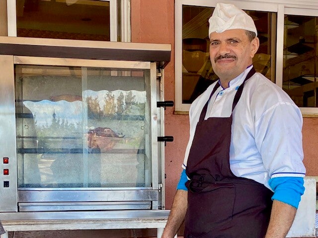 Ondertussen hadden we wel al een tijdje begrepen dat we de verkeerde kant waren opgelift, 20min. de verkeerde kant opgereden . Snel hadden we een lift terug van een wél Frans sprekende jongen die de radio zo hard had aan staan dat we niet konden praten met elkaar. Zo hard als de radio aanstond , zo hard reed hij ook en in no time waren we in het dorp Issen, de cp voorbijgereden. Gelukkig was daar een restaurant, er was zelfs een kleine souk gaande geweest. We hebben gegeten in het enige restuarant, eenvoudig maar wel lekker en spotgoedkoop. Geen mes en vork maar met 2 vorken kregen we goed gegaarde kippenbout, salade en frites, de kippenlevertjes in een apart bakje met een saus. En ook nog 2 flesjes water erbij en een cola. En dat voor 650 Mad, nog geen €6,50. We hebben nog even over de souk gescharreld waar men aan het opruimen was , er was een groot gedeelte met alleen maar auto-onderdelen, we moesten aan de vele pechgevalletjes onderweg denken.