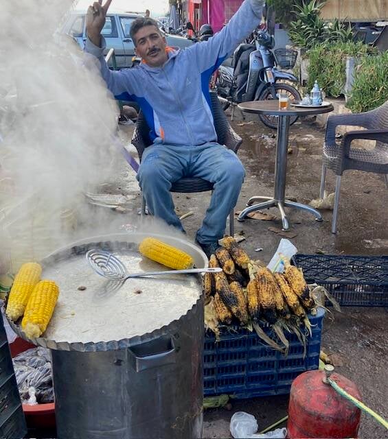 Na opnieuw wat motregen vanmiddag ben ik in mijn eentje gaan wandelen en kreeg de vraag van Hamza, een jonge knaap hier uit het dorp die op een bankje aan zee zat, of ik soms een trekje van een joint wilde. Dankjewel ,maar wel een aardig gesprek gehad over de jaren 70 en de hippies die in die tijd die naar Marokko kwamen om te blowen. Ja, wij waren ook in 1972 voor het eerst in Marokko , ook niet alleen voor de tajine.