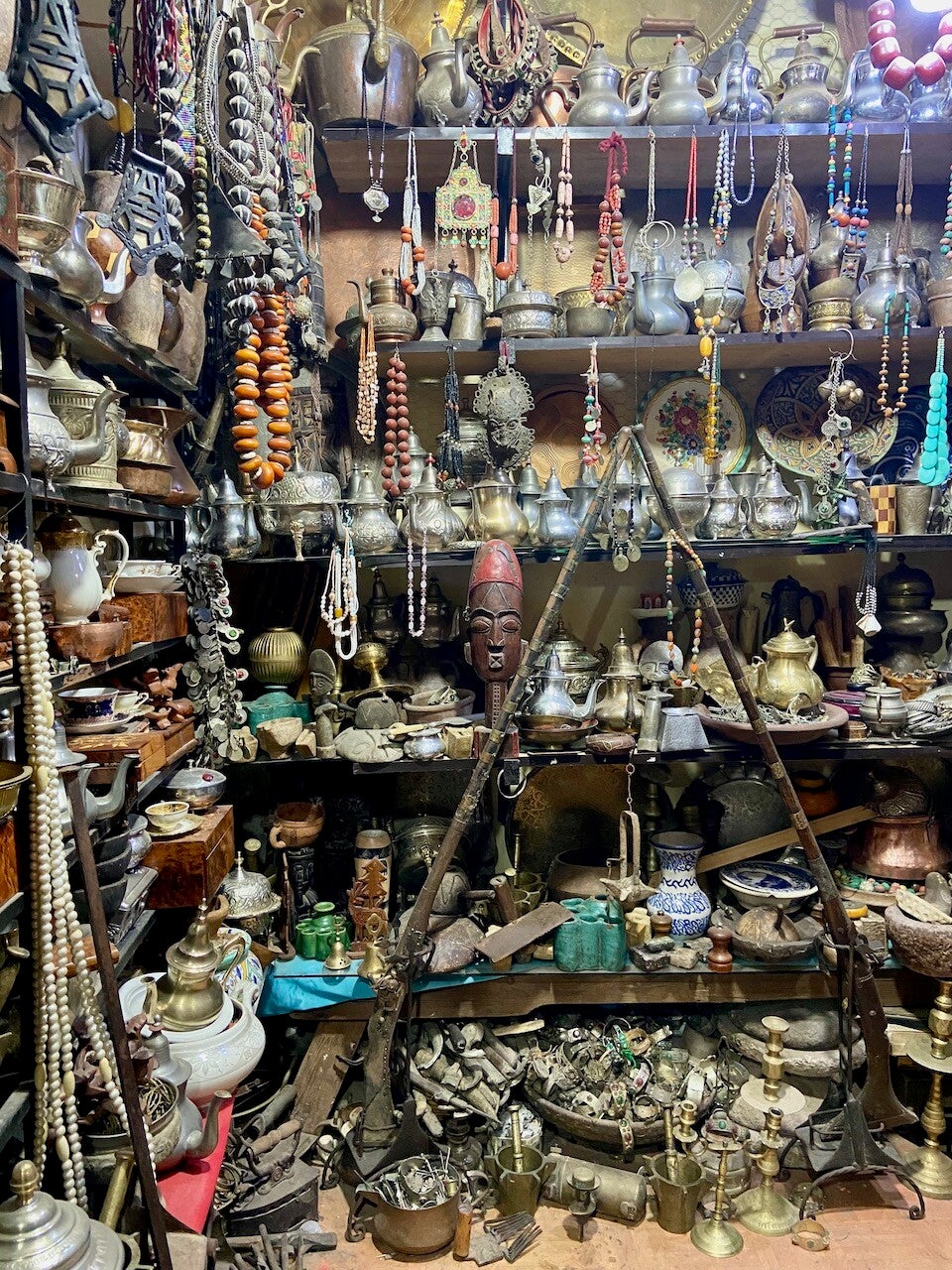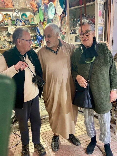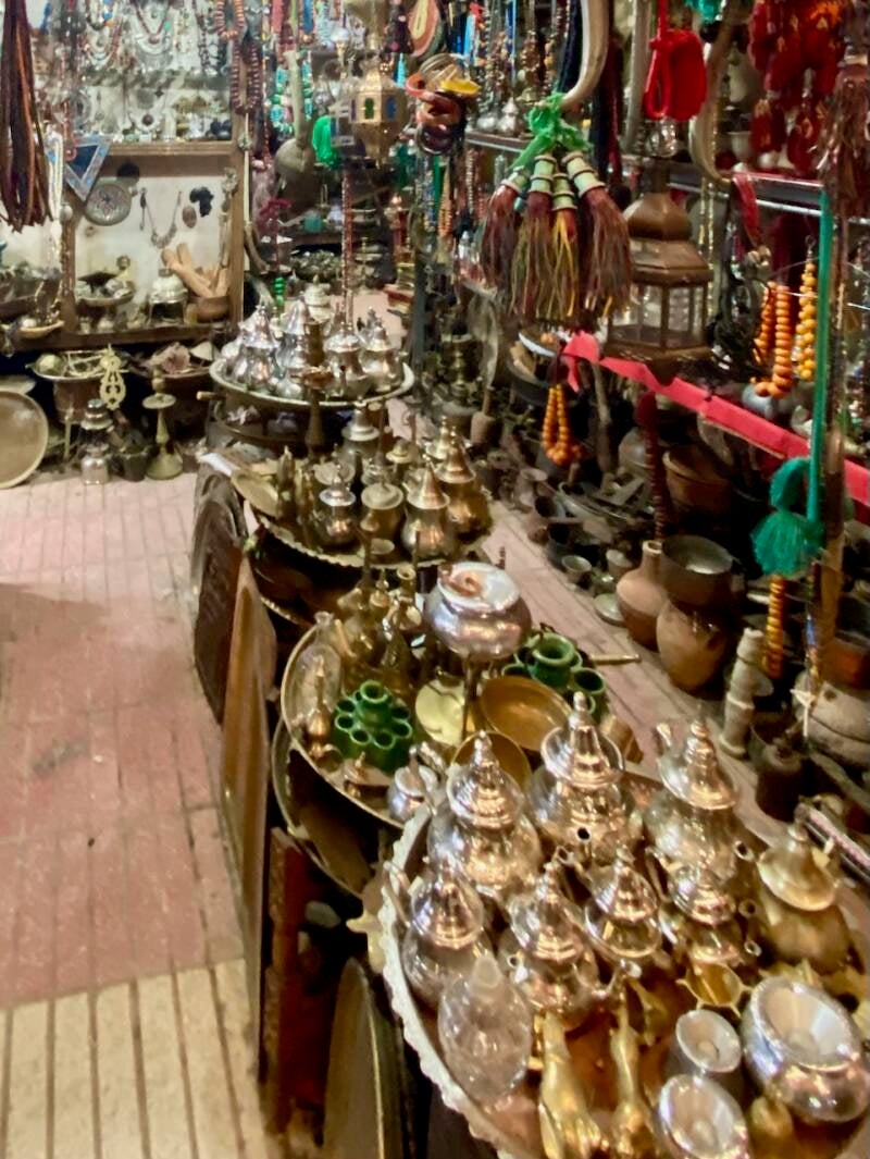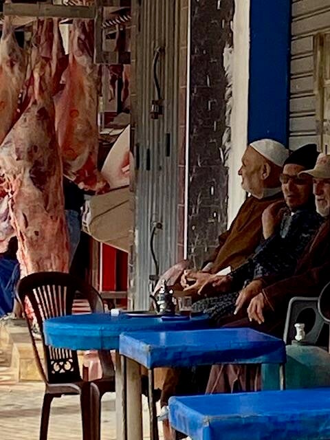 We zijn door de Arabische souk gewandeld en onvermijdelijk komen we dan ‘onze vrienden’ tegen, een vader en zoon die respectievelijk een lederwarenwinkeltje met oa riemen en tassen alsmede een souvenirwinkel met borden en ander keramiek bestieren. Na de gebruikelijke plichtplegingen , ‘hoe is het met de kinderen, hoe is het met de familie ‘ etc. wordt er ook ieder jaar door de zoon ongeveer dezelfde foto gemaakt.