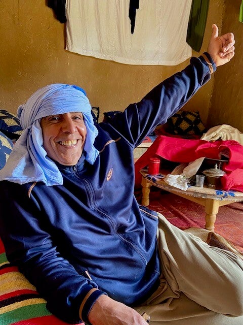 Lahcen was de vorige keer, al weer een paar jaar geleden toen we op deze camping waren, heel erg ziek volgens de familie, hij lag in het ziekenhuis, hij was altijd tenger op het magere af. We dachten dat hij inmiddels was overleden maar hij zag er nu veel beter uit als ooit tevoren. Nu nog een bezoekje aan de tandarts en het is pico bello, maar omdat er veel mensen hier 1 of meerdere tanden missen is het ook niet erg vreemd of storend. We vroegen ons af of hij ons in eerste instantie nog herkende maar toen we de naam noemden van een gemeenschappelijke kennis vloog hij ons om de hals.