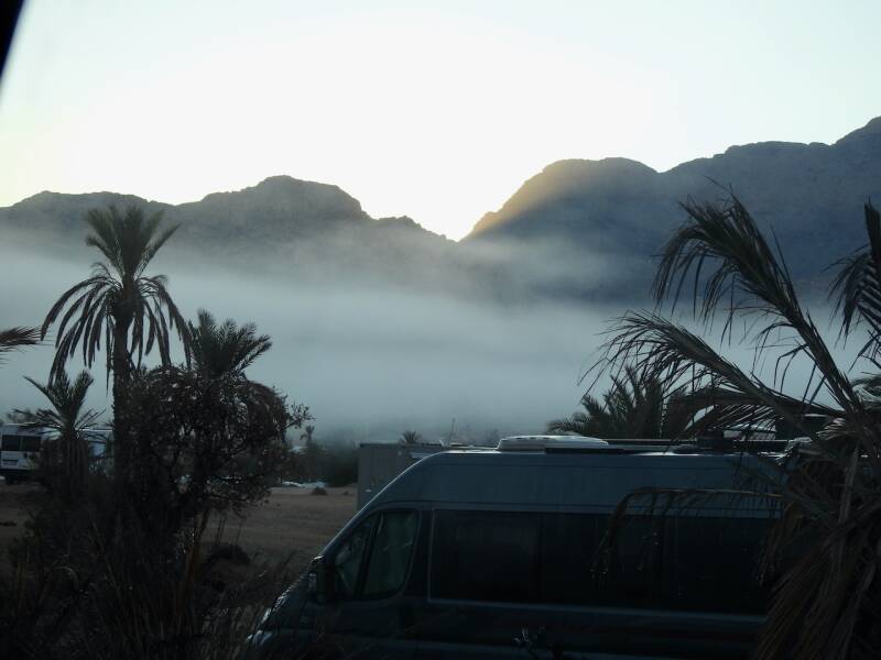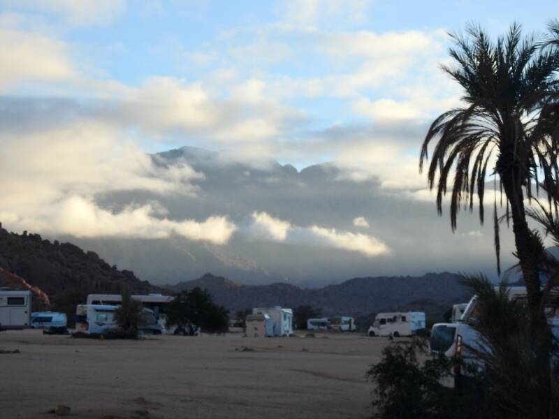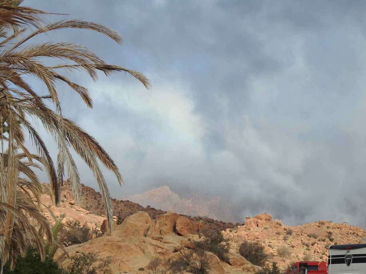 Om 8.50 uur kwam de zon over de berg heen, nauwelijks gehinderd door sluierbewolking, morgen zal dat dus om 7.50 uur zijn, wij gaan de Marokkaanse tijd aanhouden.