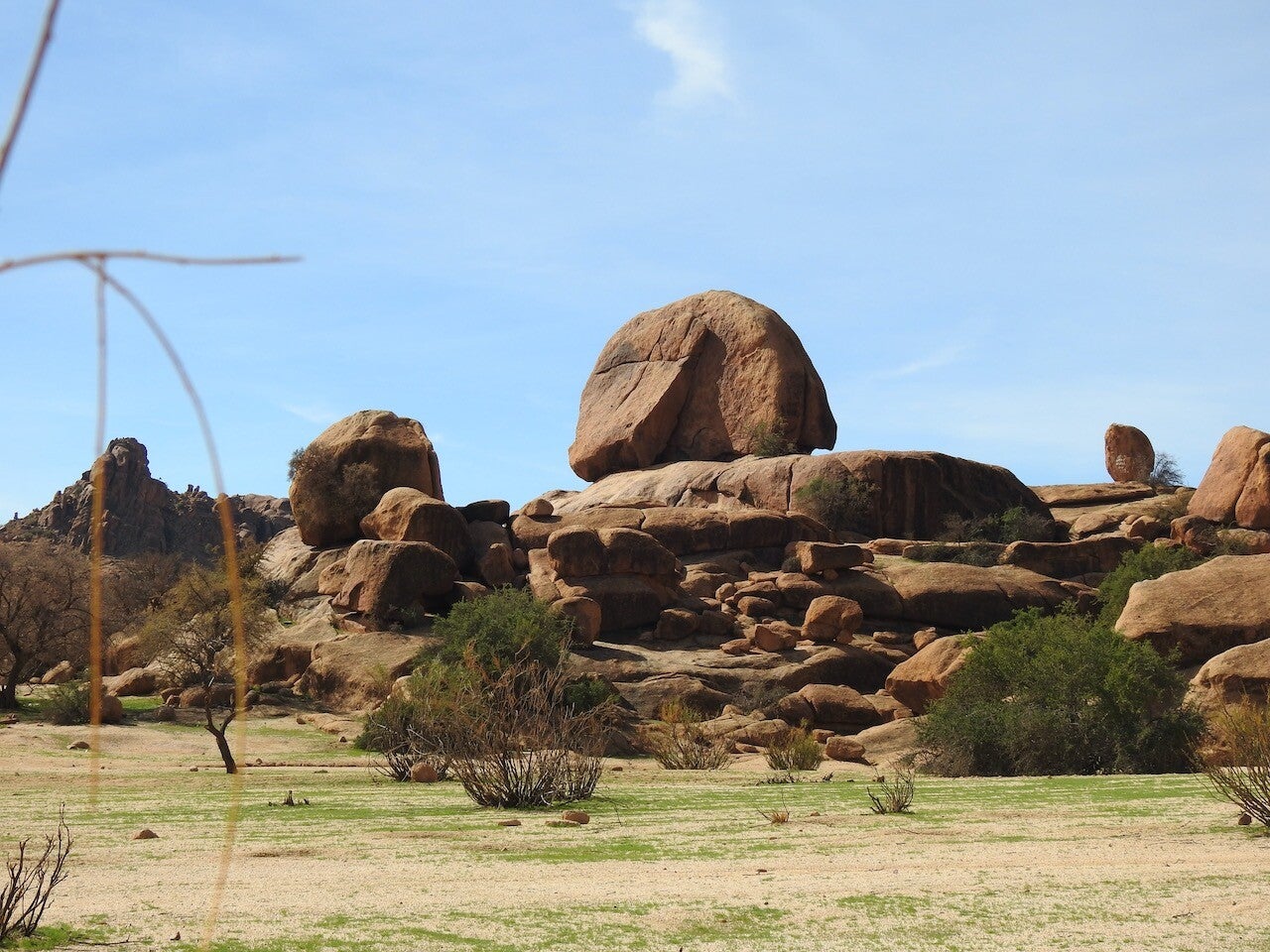We hebben vanmorgen een wandeling gemaakt langs de rotsen, een wandeling die we misschien al wel 10x hebben gedaan. Met de kennis die we nu hebben over het ontstaan van het keteldal , keken we met heel andere ogen naar de rotswand en herkenden dingen waar we net kennis van hadden genomen. De ronde vormen door de bolverwering, de tekenen van erosie, de gleuven in de granietrotsen , we hebben alleen maar foto’s gemaakt mat een oh ja gevoel.