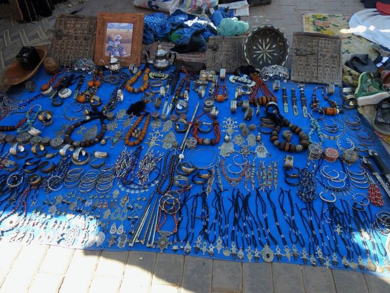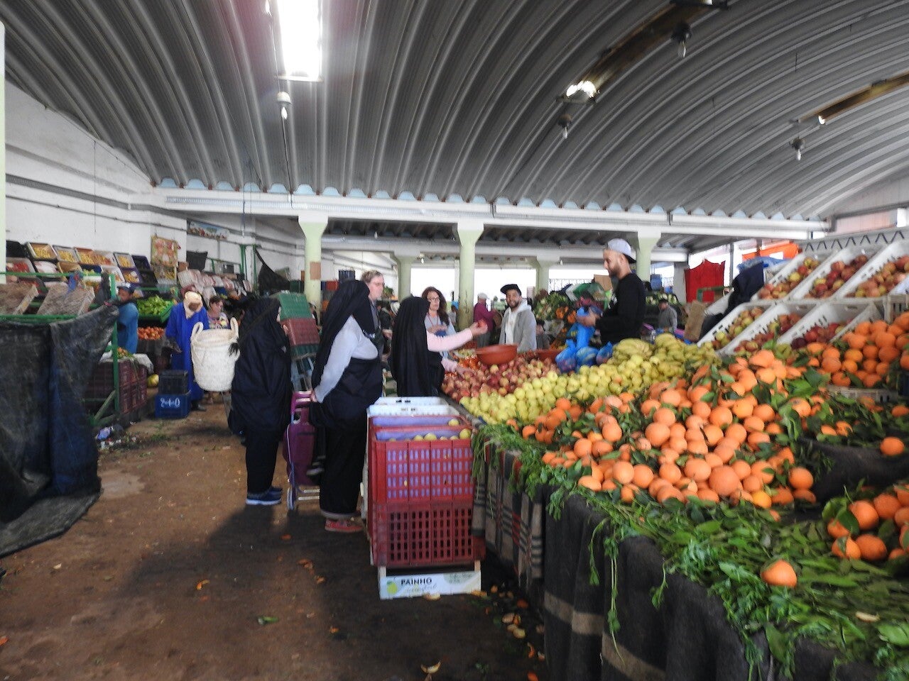Het was vandaag de mooiste dag tot nu toe sinds we in Marokko zijn. Althans wat het weer betreft. Nadat de mist was opgetrokken was het alleen maar zonnig weer en vooral ‘ochtends was het windstil. Daardoor voelde het erg warm toen we van de souk naar de camper liepen. ’s Middags werd het 23º, heerlijk omdat er toen een licht windje was.