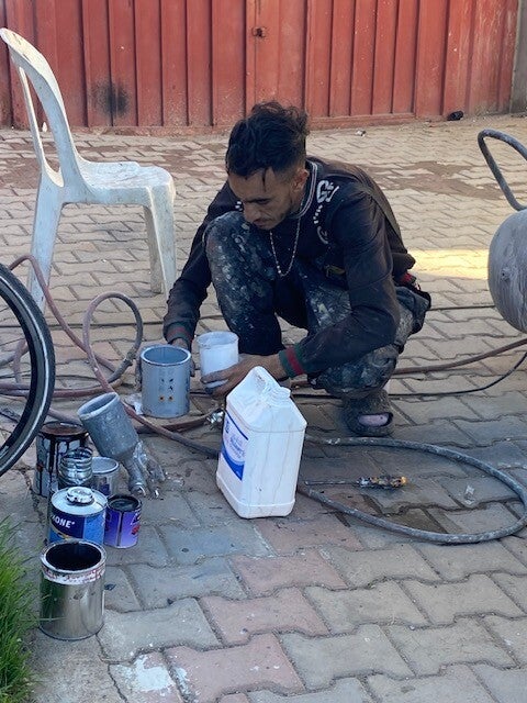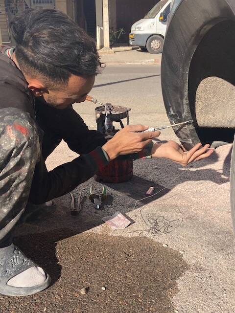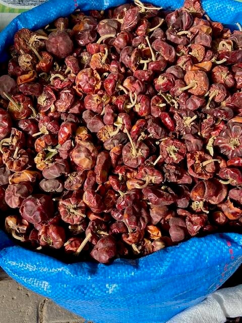 We hadden pinda’s nodig, bij hetzelfde winkeltje kun je tandenstokers kopen, dat zijn uitgebloeide bloemen. Daar kon je ook gedroogde paprika’s en gedroogde rozen kopen, het schijnt dat die in de thee worden gedaan, het is voor een goede nachtrust en helpt tegen lichte maag/darm klachten. We zijn doorgelopen naar de garage van Mohammed, om te kijken naar de camper van Kees en trui. Die bleek al klaar te zijn, ze moesten alleen nog een tijdje wachten totdat de lak uitgehard was.