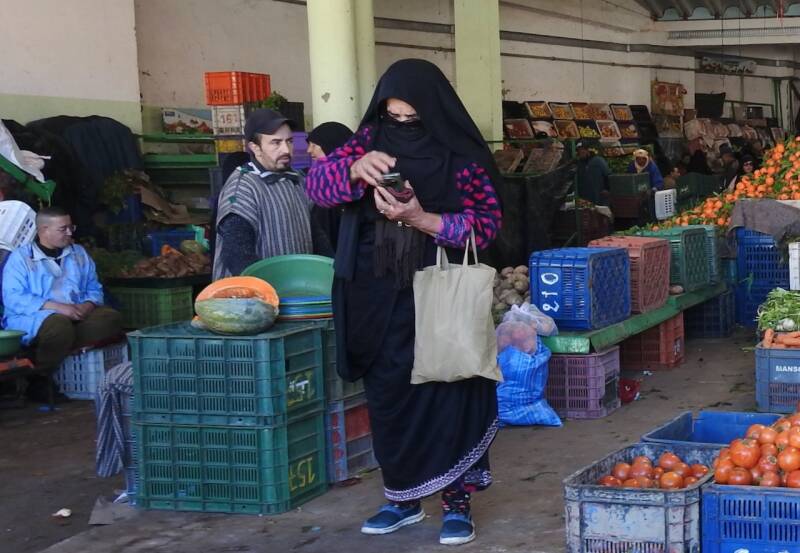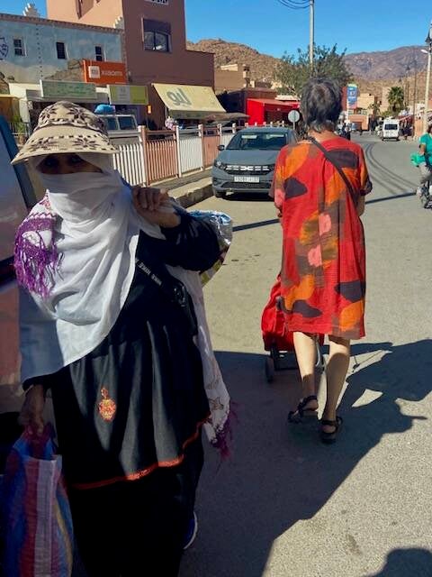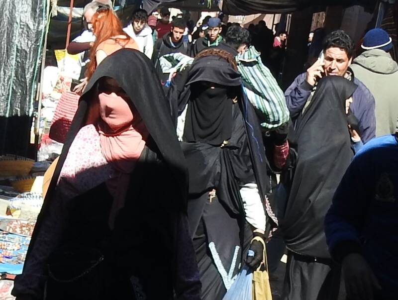 Nu had ik op de markt al wat foto’s genomen met het fototoestel, een keer van een gesluierde vrouw die naast iemand liep met naar wat het leuk, een panty over haar hoofd. Of er wordt een nieuwe trend gezet of we lezen dat er in een hotel in Tafraout een overval is gepleegd op een bus vol Amerikanen de net vanaf Agadir waren gekomen.