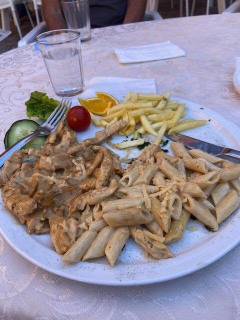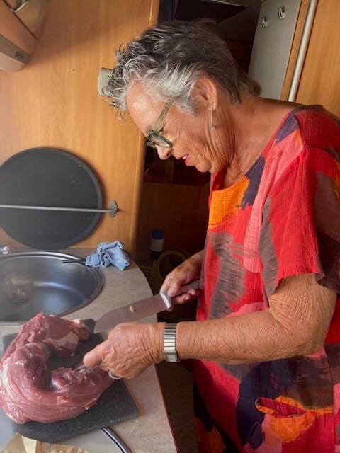 We hebben nog wat ruimte nodig in de koelkast, dus we eten vanavond shoarma gemaakt van kalkoenfilet. We eten niet vaak rood vlees maar als we in Tafraout zijn kopen we altijd een hele ossenhaas bij een slager die in een hal zit waar meerdere slagers naast elkaar zitten, de biefstukken vriezen we dan in..
