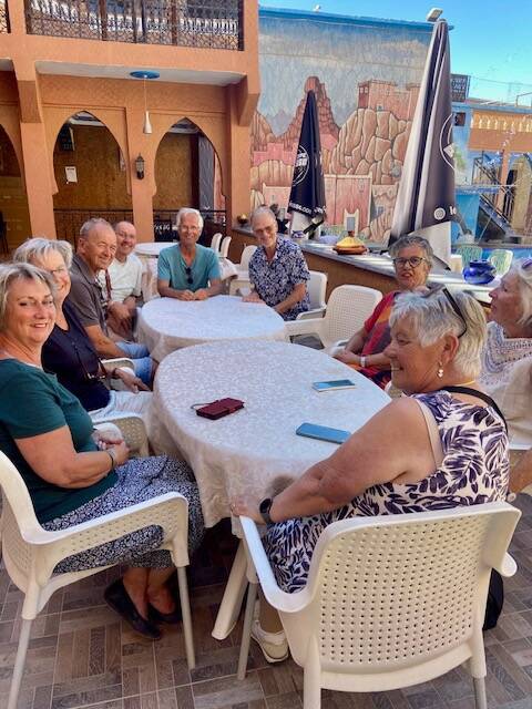 Vanmiddag zijn we ‘bij het zwembad ‘ gaan eten , een hotel restaurant gevestigd in dezelfde straat als waar Mohammed zijn garage heeft. We, dat was in dit geval de complete Avondrood + groep. Het eten was kennelijk van wisselende kwaliteit, ik was dik tevreden maar Henk en André hadden een tajine Kefta balletjes, de balletjes waren niet gaar, ze kregen wel andere of dezelfde nog even matig doorgegaard. Maar gezellig was het wel.
