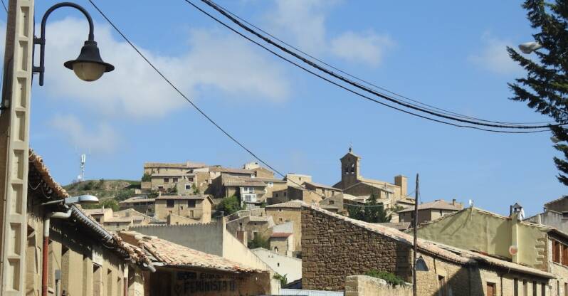 Daar bleek een circus te zijn neergestreken op de plaatselijke cp dus opnieuw naar een alternatief gezocht, 11 km verder ligt San Martin de Unx met cp. Tomtom wilde ons een paadje in sturen die te breed leek voor een kinderwagen, dus Everdien wilde doorrijden. Daar had ik helemaal geen oren naar en nadat we het gevraagd hadden in het dorp kwamen we alsnog op de juiste ( nieuwe )cp.