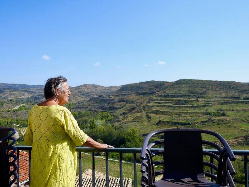San Martin de Unx is een middeleeuws wijndorpje, met 436 inwoners, de specialiteit hier is de rosé. We hebben een wandeling door het dorp gemaakt, daar ben je snel klaar mee. Het dorp kent wel leuke snelle middeleeuwse straatjes. In een bar met een fantastisch uitzicht vanaf het terras hebben we een paar eenvoudige pinxtos gegeten en een heerlijk glas rosé gedronken. De bodega’s waren gesloten vanwege siësta , we hebben nog geen rosé kunnen kopen.