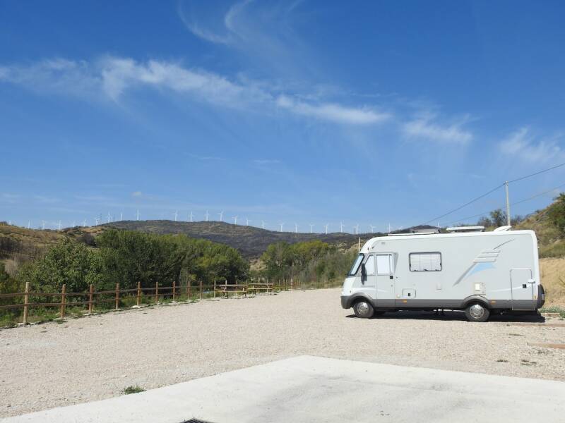Je ziet nogal wat windmolenparken in Spanje , ook hier zien we ten noorden zowel als ten zuiden van ons een windmolenpark. Spanje heeft meer dan 1300 windparken met bijna 23.000 windmolens. Deze windturbines produceren momenteel een kwart van de Spaanse energiebehoefte en na Duitsland is Spanje het land met de hoogste capaciteit windenergie. Voor 2030 wil Spanje ook nog eens 17 drijvende windparken installeren op zee , daar waar de zee te diep is voor funderingen op de bodem.