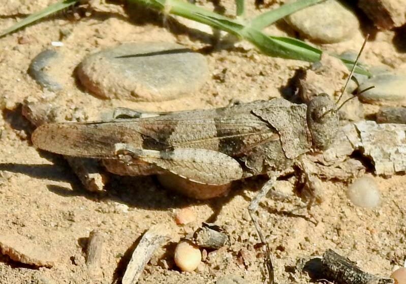 Het is hier heerlijk rustig ondanks de weg die er langs loopt (’s nachts geen last van), er zijn hier vliegende blauwvleugel sprinkhanen, koerende duiven en vlinders. En regelmatig een bonte vliegenvanger.