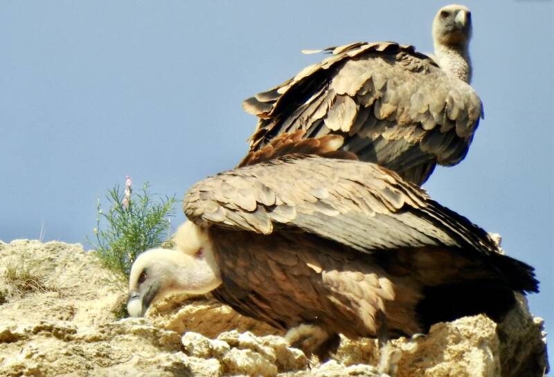 We staan op de cp in falces en tot onze grote vreugde zijn hier bij de rotswand vale gieren. Kijken of we morgen een betere foto kunnen maken.