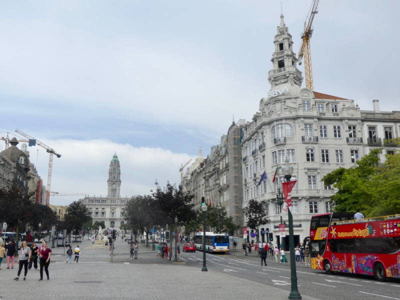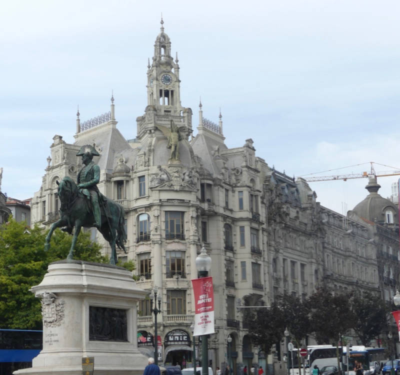 We zijn naar de kade van Ribeiro gelopen, nog wat in de wijk rondgekeken en een hapje gegeten. We zijn weer naar boven gegaan via een kabelbaantje, het was ons te veel trappen klimmen om weer in de buurt van het station te komen. Daar vlakbij is het plein da Liberdade, daar staan imposante gebouwen uit het begin van de vorige eeuw en iets later, waarin nogal wat bankgebouwen gevestigd zijn.