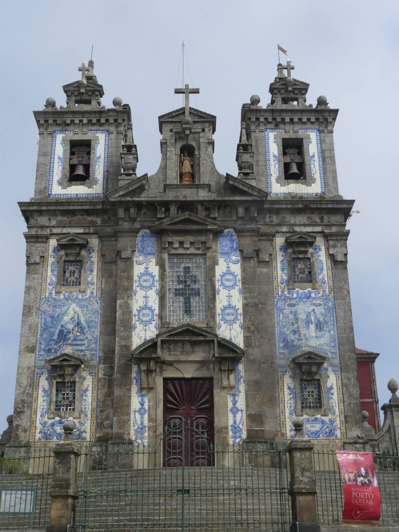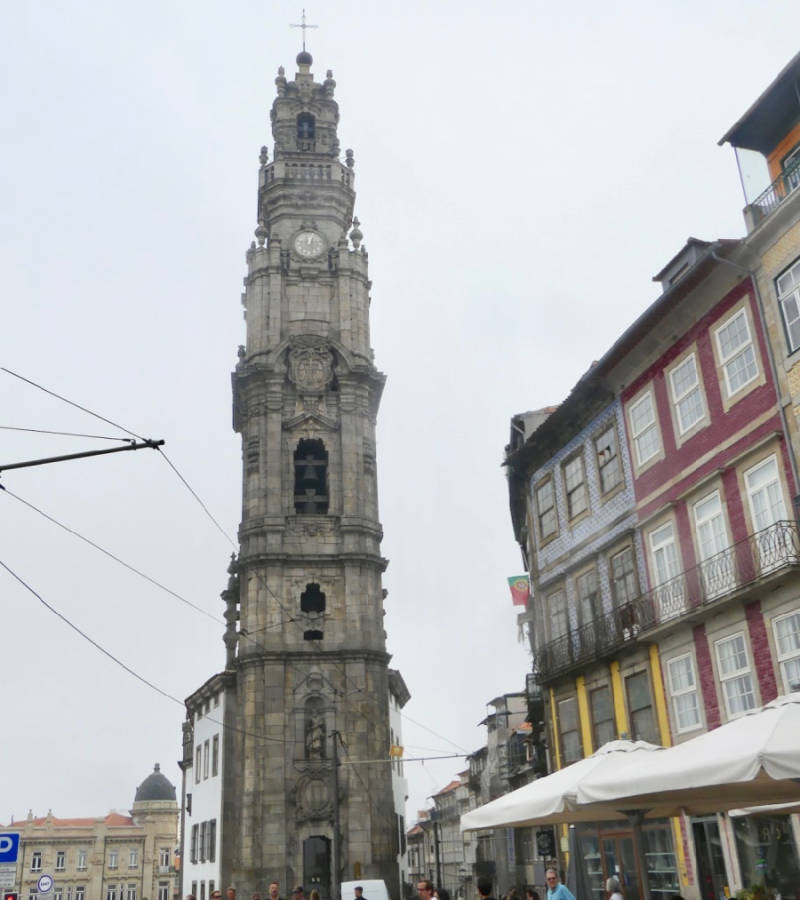 De Torre dos Clérigos wordt wel het visitekaartje van Porto genoemd. Niet omdat de toren nu erg mooi is, maar wel omdat hij kenmerkend is voor Porto omdat hij hoog is en zo op veel plaatsen te zien is. De toren is 75m hoog en is van graniet. De kerk is gebouwd door de architect Nicolau Nasini, van Italiaanse afkomst. Het is een barokke kerk uit de 2e helft van de 18e eeuw, de voorgevel wordt beschreven als prachtig barok, wij vinden dat nogal tegen vallen. Je kon de toren beklimmen, wij lieten de ruim 200 treden voor wat het was, te veel en met die mist had je toch geen mooi uitzicht. Er werd nogal wat bombastisch op het orgel gespeeld, niet onze smaak maar dat deed natuurlijk niets af aan het interieur.