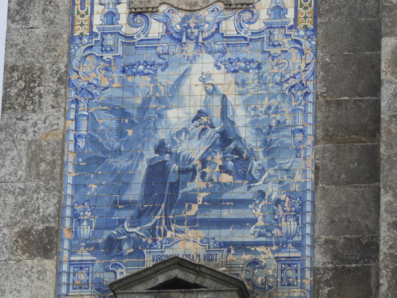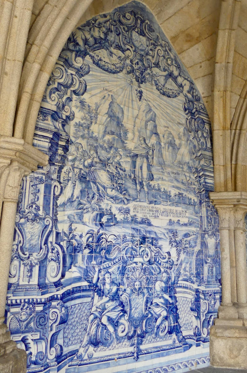 Tegen de de kathedraal aan ligt het gotische klooster van het Sé do Porto, €3,- entree . Ook hier zie je blauwwitte azulejos, het klooster dateert uit de 14e eeuw, de azulejos zijn omstreeks 1730 gemaakt. Het zijn taferelen uit het leven van Maria. Via een granieten trap kom je op een terras en hier zijn ook 2 muren met azulejos te vinden.