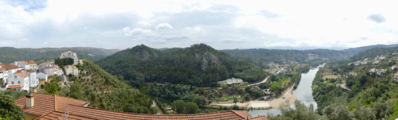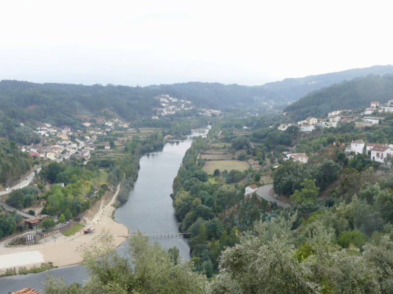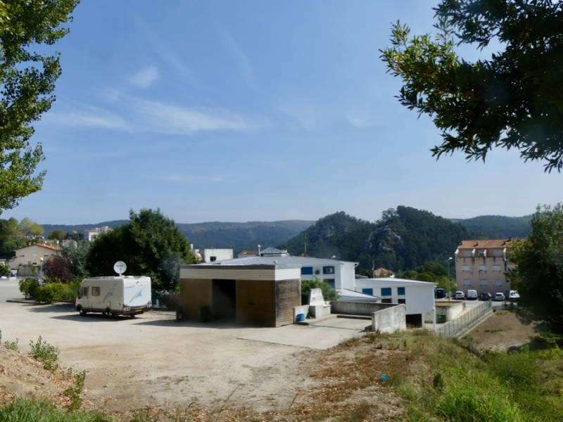 De cp heeft naar de zijkant een minder fraai uitzicht, op lage flats. Aan de andere kant kijken we tegen een steile berghelling aan Maar de omgeving hier is schitterend , we staan in het dal van de rivier de Mondego waar we , als we 100m lopen, een prachtig uitzicht over de rivier en het dal hebben.