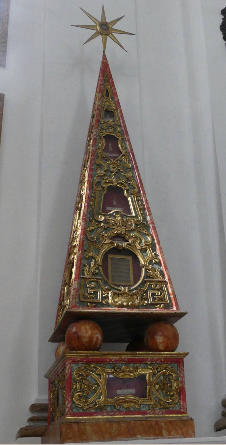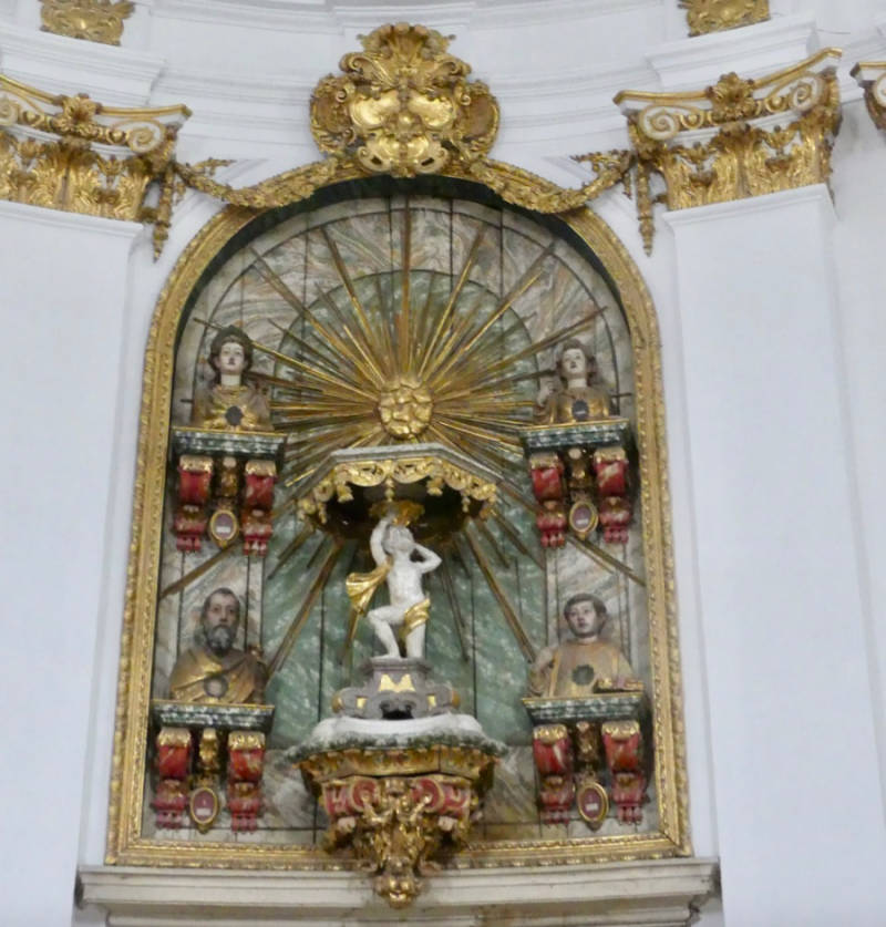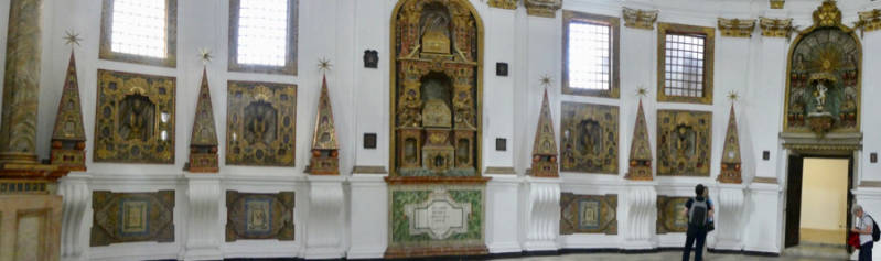 Het sanctuarium met de retabelen en de piramides met relikwieën
