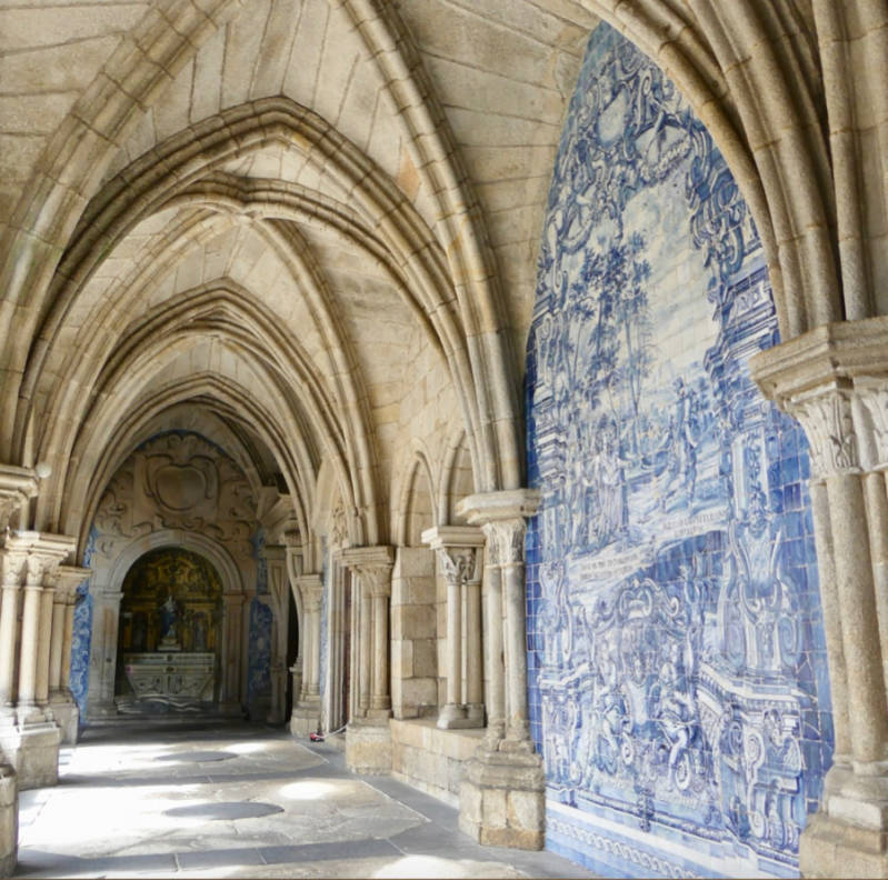 Het klooster van Sé do Porto, de muren van de kloostergangen zijn versierd met azulejos.