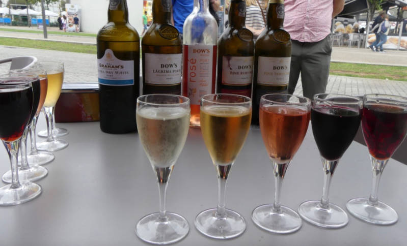 Nu hebben we vaker bierbrouwerijen, wijnhuizen en cava coöperaties bezocht, wij hebben het bij een portproeverij op het terras van een café gehouden. Het café behoorde bij de overdekte markt waar je ook kon eten en drinken, meer dan port alleen trouwens. Voor €5,- kon je 5 verschillende portsoorten proeven. We hadden mini glaasjes verwacht maar ze waren aardig aan de maat voor zo midden op de middag. De tawny port vonden we het lekkerst.
