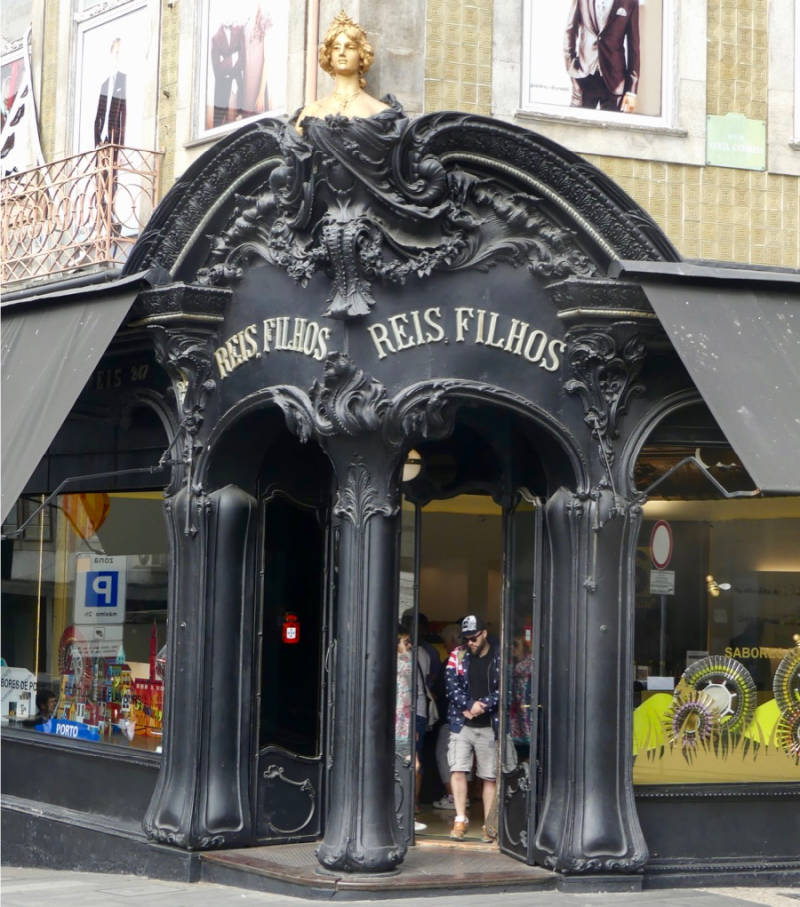 In een winkelstraat met nogal wat dure winkels bevond zich het meest beroemde koffiehuis van Porto. Het heeft een art nouveau gevel en het interieur heeft ook veel allure. Je moest in de rij staan om binnen te komen om een kop koffie te drinken zodra er weer een tafeltje vrij kwam. Niet ons kopje thee dus zijn we verder gelopen om naar de kerk San Clara te lopen, een kerk die wordt omschreven als in het bezit zijnde van een erg mooi interieur. Een teleurstelling van korte duur was het dat de kerk wegens restauratie gesloten was.