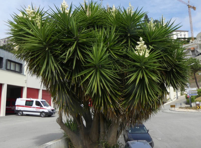 Weinig foto's door de regen, we staan bij de brandweerstraat. Voor de brandweerkazerne staat een enorme yuca.