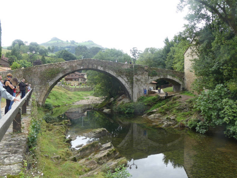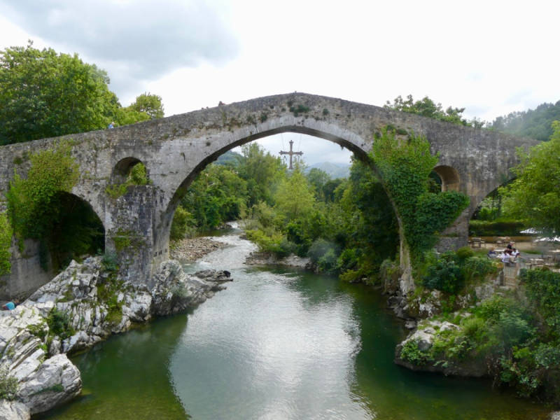 We zijn vanmiddag het stadje Cangas ingewandeld. Cangas de Onis was de eerste hoofdstad van het koninkrijk Asturië en het is een van de poorten tot de Picos. Het symbool van de stad is de Puento Romana, de brug over de rivier de Sella. Onder de middelste boog hangt het kruis van de overwinning. Er staat hier vlakbij de Ermita de Santa Cruz, een kerkje gebouwd in 733, gebouwd op een vroeger heiligdom. In de kerk staat nog een dolmen uit de bronstijd, het kerkje is alleen ’s morgens open.