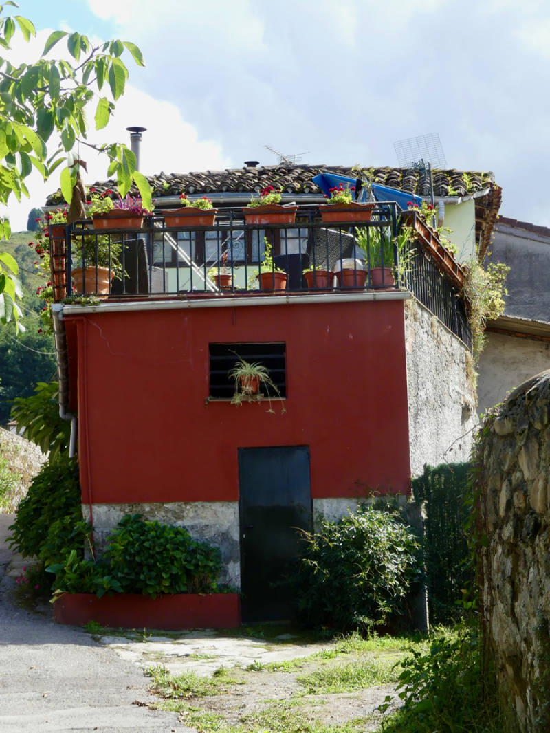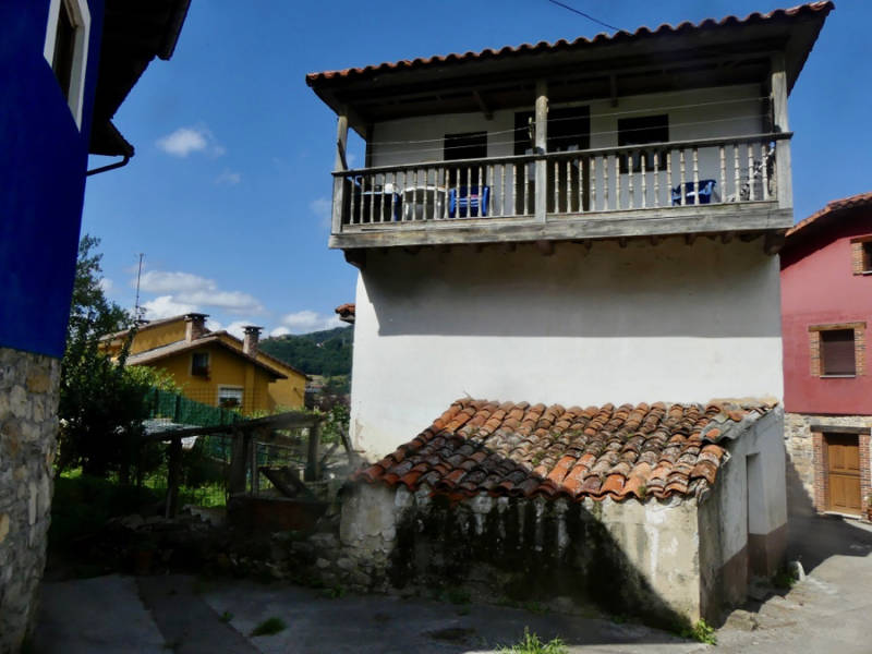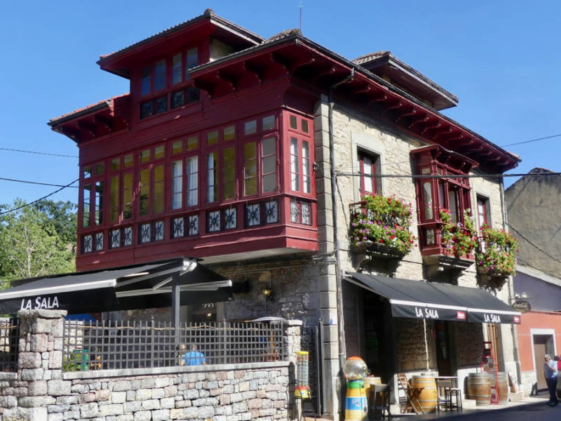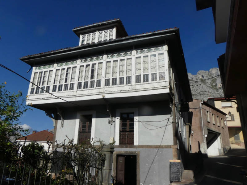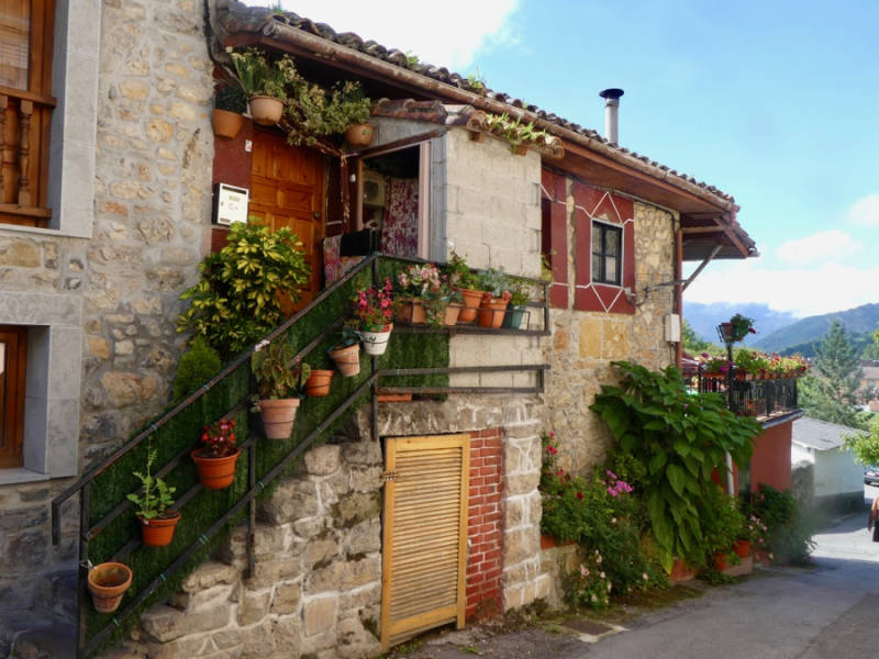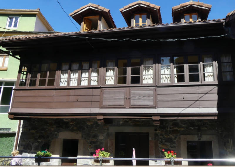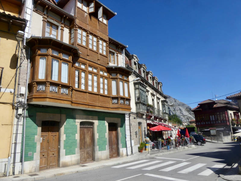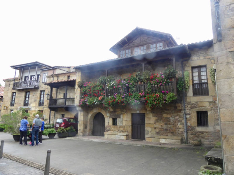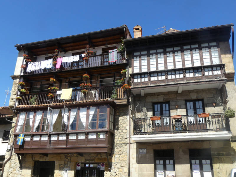 Ook staan er oude huizen, die zie je als je de Ruta Monumental wandelt. Net als trouwens in Liérganes zie je hier ook huizen met balkons en geraniums maar doordat de zon scheen en witte gordijntjes gedrapeerd voor de ramen hangen, wat een apart effect geeft met het bruine hout, heeft het wel wat.