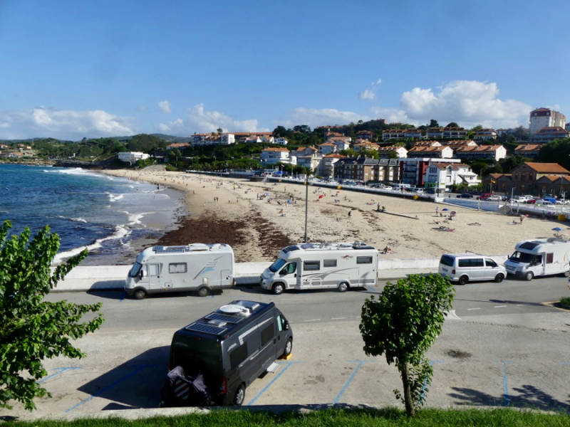 Er zijn nog steeds veel campers onderweg in Spanje, wat opvalt is de hoeveelheid Spaanse campers hier aan de Noord Spaanse kust , wellicht ontvluchten die de nog steeds hoge temperaturen in het binnenland. En er komen hier in Spanje natuurlijk ook steeds meer campers, de verkopen van nieuwe campers zijn hoog. Gisterennacht in Liérganes waren er 11 campers, behalve wij alleen maar Spanjaarden. Hier in Comillas stonden vannacht 14 campers, ongeveer de helft is Spaans, 3 Nederlandse en 3 Engelse campers en nog een Duitse en Franse camper.
