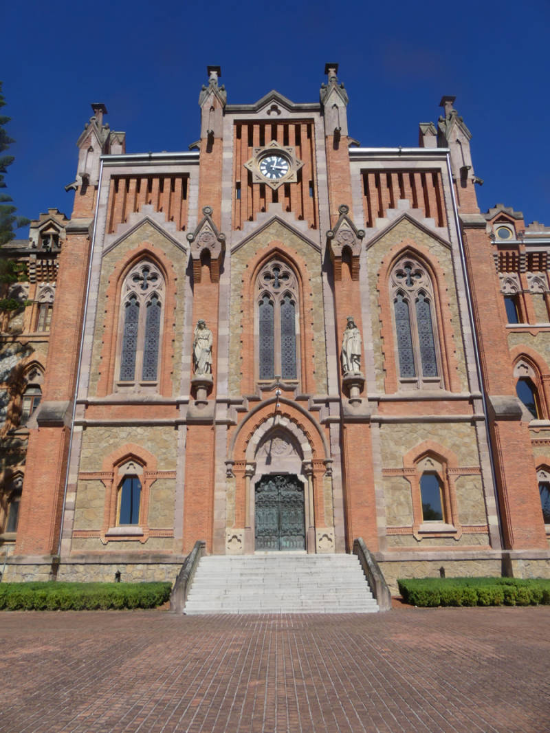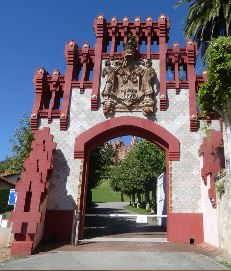 We zijn doorgelopen naar de Antigua Universidad Pontificia waarvan de opdracht tot het bouwen kwam van alweer de markies. De eerste steen werd gelegd in 1883, toe was de markies al overleden, hij heeft zelfs de voltooiing van zijn eigen paleis niet mee kunnen maken. Omdat de universiteit op een heuvel ligt heb je prachtige uitzichten, aan de ene kant over de heuvels, aan de andere kant naar de zee. Voor de oprijlaan naar de universiteit ligt de ook in modernistische stijl opgetrokken poort naar de universiteit