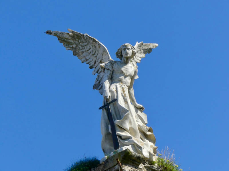 We besloten de wandeling met een bezoek aan de begraafplaats die op de ruïnes ligt van de oude kerk van Comillas. De modernistische architect Dominech heeft het kerkhof opnieuw ingericht en vormgegeven.