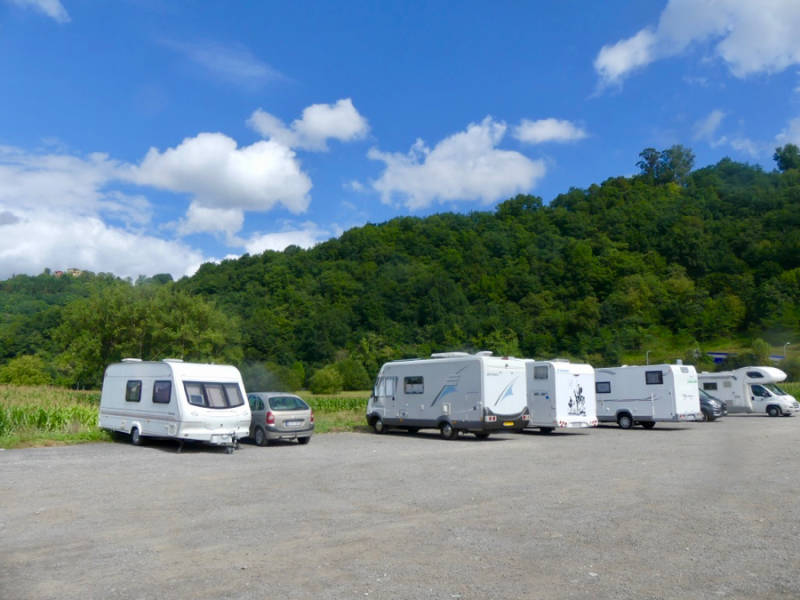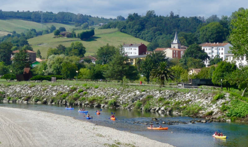Na het tanken van LPG zijn we via de A8 een km of 40 westelijker gereden, ook al een mooie route die tussen de Oceaan en de Picos de Europa doorloopt. We zijn via de fraaie, bochtige N634 gereden die langs de Rio Sella ligt. Vlakbij Cangas de Onis werd druk gekanood op deze rivier. We staan in Cangas op een parking, bedoeld voor autobussen en vrachtwagens, campers worden hier naar toe verwezen omdat de officiële cp maar 4 plaatsen telt.