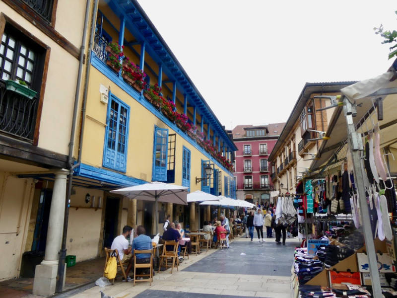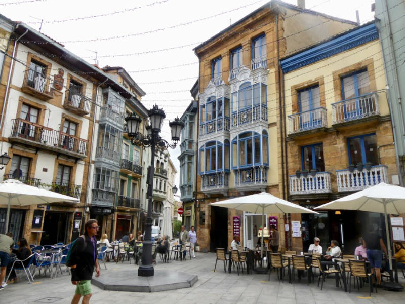 De 1ste indruk is dat Oviedo een grootsteedse uitstraling heeft, er zijn mooie winkelstraten en grote 19e eeuwse gebouwen, naast de natuurlijk veel oudere.