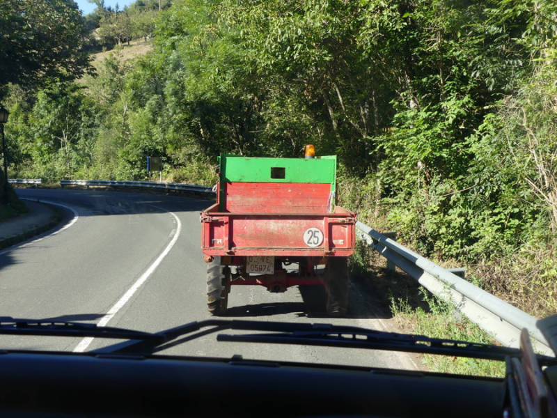 De weg hier naar toe ging door de kloof van het riviertje La Trubia, een erg mooie route. De weg is ook populair bij wielrenners, die reden meestal in 2-tallen en niet in een grote groep zodat het passeren meestal wel redelijk makkelijk was, ondanks de bochtige weg. De cp ligt net buiten het dorp San Martin in een prachtige omgeving, een groot contrast met de flats van gisteren rondom ons.
