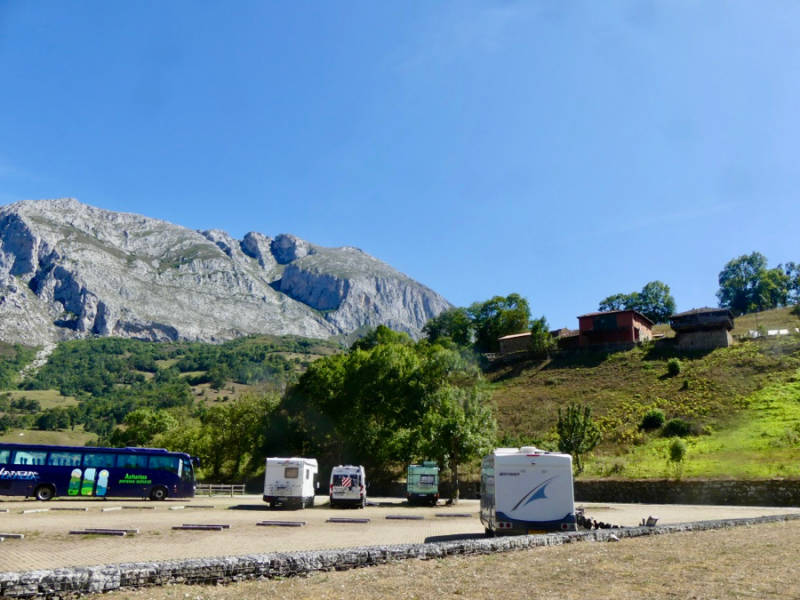 We staan in het nationale park de Picos de Europa ,het eerste Spaanse natuurreservaat. We gaan niet verder het park in, wandelen in de bergen kunnen we normaal al nauwelijks, met de gekneusde/gebroken teen van Everdien lukt het helemaal niet. Ze heeft hem gisteren wat geforceerd met teveel klimmen en dalen tijdens het wandelen, ze heeft vandaag meer pijn dan de afgelopen dagen.
