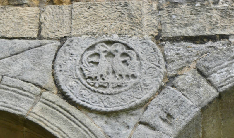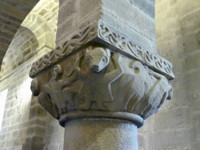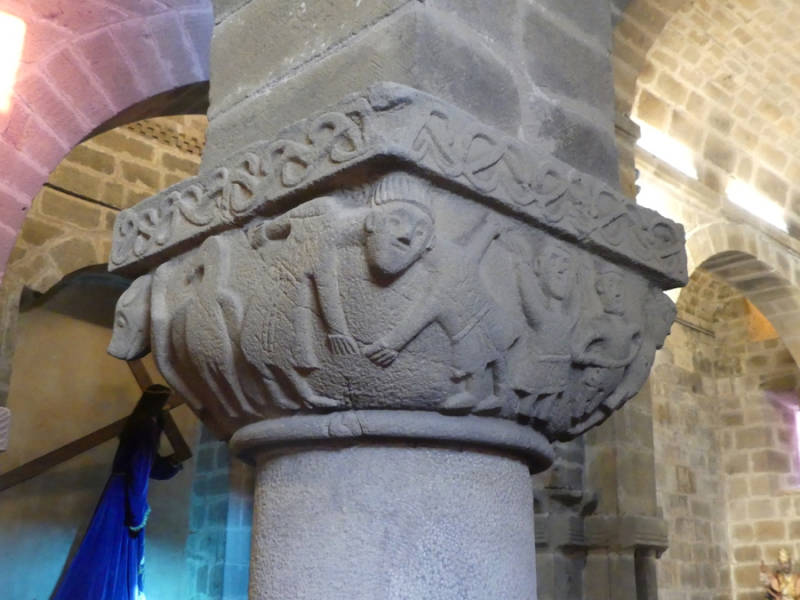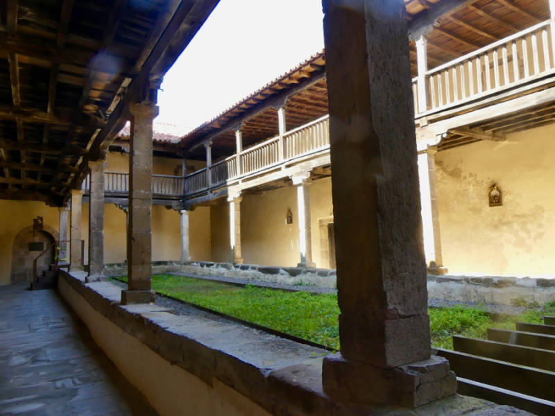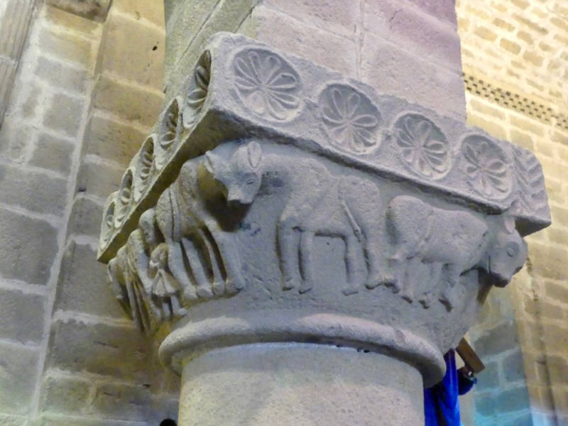 Vanmorgen zijn we bij het kerkje vlakbij ons wezen kijken. Van buiten ziet het er wat gewoontjes uit, het is echter een mix van bouwstijlen uit verschillende eeuwen. Het oudste deel is pre Romaans en daarover heen is in de 11e eeuw een een Romaanse kerk gebouwd. Daar tegenaan een klooster uit de 17e eeuw. Het interieur van het kleine kerkje is eenvoudig, maar bovenaan de zuilen, zijn de kapitelen versierd met Romaanse en Keltische symbolen. Bijzonder om dat zo te zien, we kregen een rondleiding in het Spaans, we waren met z’n tweeën. De mevrouw deed haar best om in eenvoudig Spaans ons dingen uit te leggen, jammer van haar onwelriekende adem.