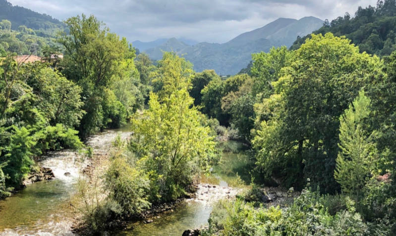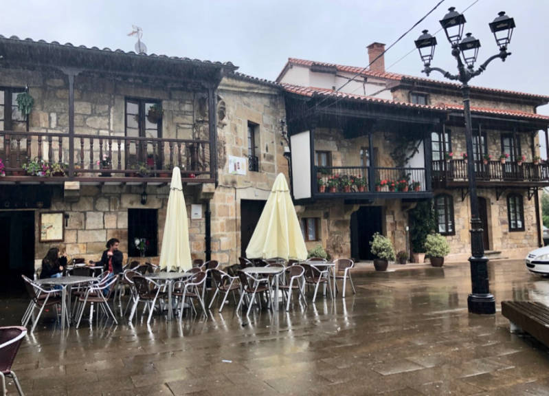 We zijn niet meer in Baskenland maar in de regio Cantabrië. We staan in het dorp Liérganes, , vlak onder Santander. We zijn hier naar toe gereden via de gratis snelweg A8, het was in totaal zo’n 90km. De snelweg loopt eerst vlak langs de kust en kent mooi uitzichten over de kliffen en de Oceaan, althans als het mooi weer was geweest. Helaas motregende het flink waardoor het zicht beperkt was en sowieso de schoonheid van het landschap nu niet tot zijn recht kwam. Ook de bergachtige omgeving konden we niet goed zien, wel dat het er groen is, dat is niet voor niets zo natuurlijk. Cantabrië bestaat voor de helft uit bergen en is dan ook geliefd bij bergsporters