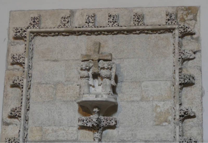 We hebben vervolgens gezocht naar de overblijfselen van een voormalig pre Romaans 19e eeuws kerkje, die was ondertussen, door talrijke verbouwingen opgenomen in de muur van een grotere kerk waardoor er alleen een voormalige gevel zichtbaar is . Mooi is het niet, wel bijzonder.
