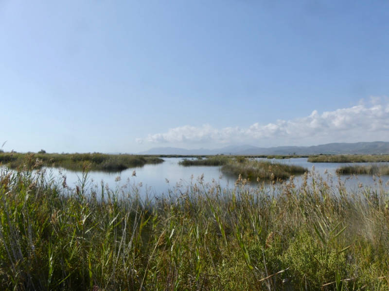 We zijn een kilometer of 50 noordelijker gereden, onderweg kwamen we de nodige overwinteraars tegen die zuidelijk reden, tamelijk veel Nederlandse campers waren daartussen. We staan vrij in Torrenostra, op een grote onverharde parking aan zee, daarvan gescheiden door een lage duinenrij. Het is bij een moerassig natuurgebied, we hebben hier 2x eerder gestaan. Dat was afgelopen mei en het jaar daarvoor ook in het voorjaar. Toen was er veel meer leven in het natuurgebied, er broedden hier toen witwangsternen en er zongen karekieten.