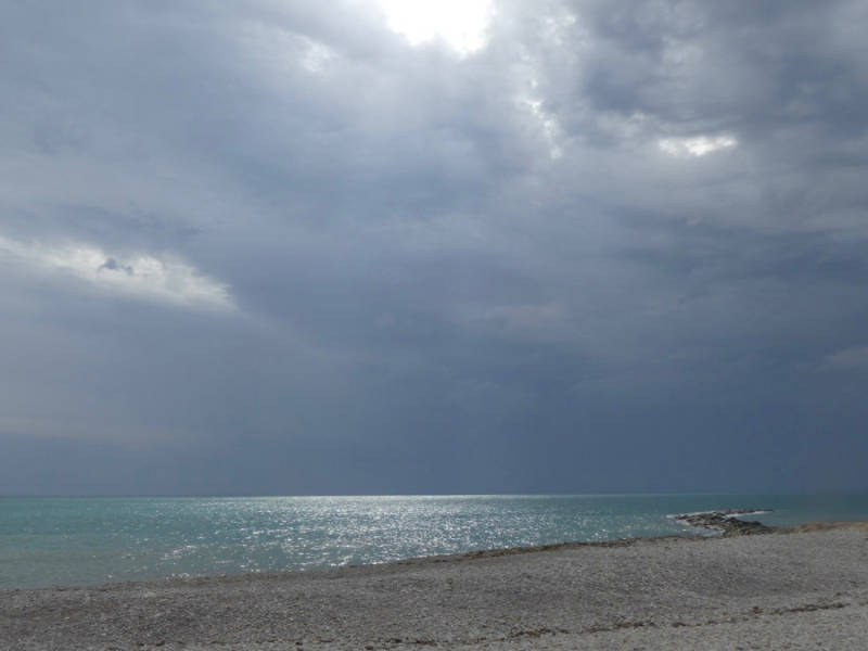 We zijn aan het begin van de middag verkast naar een parking aan de andere kant van het dorp die we ontdekten tijdens een wandeling vanmorgen.. Daar staan we op asfalt, er was onweer voorspeld voor vanmiddag. Omdat in het natuurgebied toch niets te beleven viel had ik niet zo’n moeite mee om daar weg te gaan. Hier staan trouwens 7 campers, 2 Franse, 2 Duitse, 1 Spaanse , 1 Engelse en wij. We staan aan de kant van de zee en hebben mooi zeezicht.