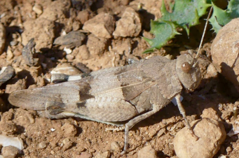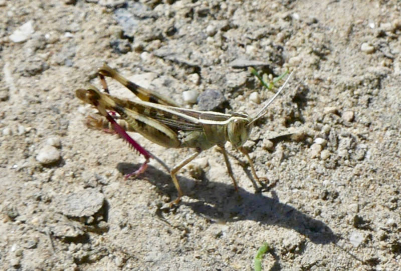 Een ander soort sprinkhaan dan in Cullera, deze vliegen een stukje.