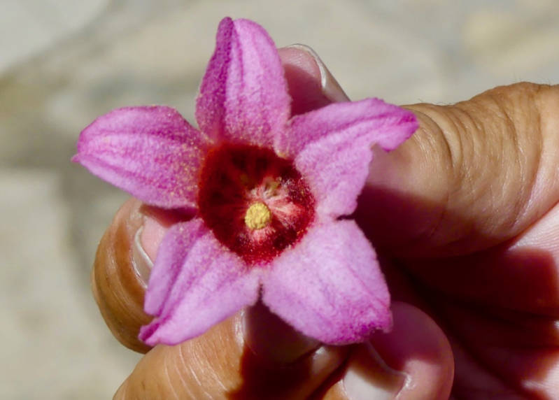 We hebben sinds kort een app waarmee we planten en bloemen, flora, mee kunnen identificeren. Maar van deze bloem en zaaddoos raakt de app wat in de war, we weten  nog niet welke boom het is.