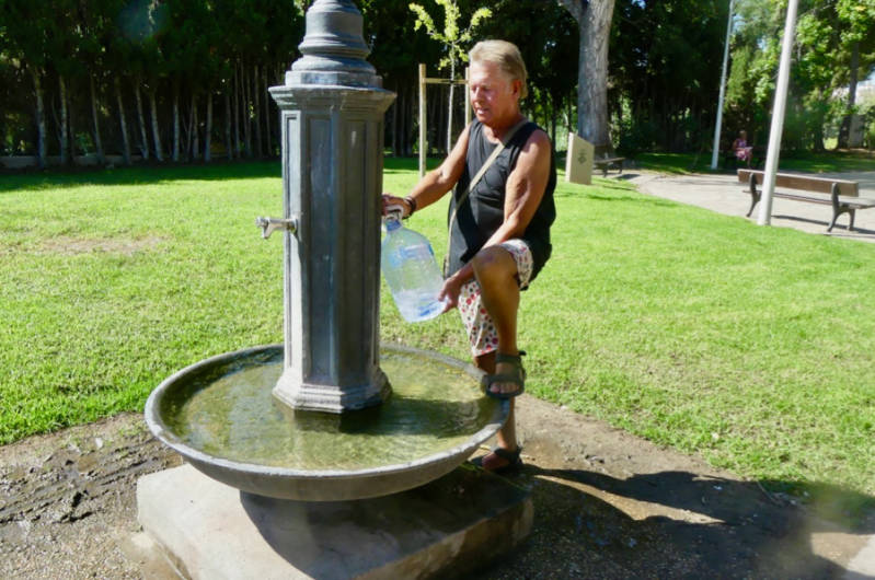 De Duitse die naast ons stond is alleen reizend en praat goed Nederlands. Hij heeft hier in Spanje gewerkt en had een Nederlandse baas.