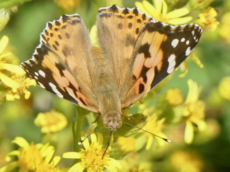 Nog een trekvlinder: de distelvlinder , legt eitjes op distels.