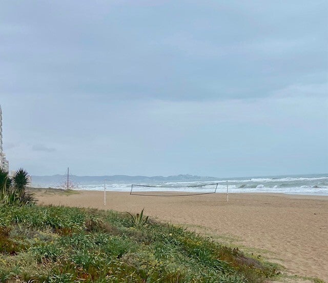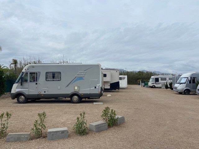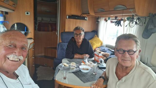 We zijn naar de cp La Finca gereden waar onze oude vriend Bram al een jaar of 10 woont. Bram kennen we ruim 20 jaar van Good Old Plage de Piemanson in de Camargue en we zien elkaar ieder jaar wel een keer. 2 jaar geleden is helaas Marianne, de vrouw van Bram overleden. We hebben vanmorgen bijgepraat onder het genot van een kop koffie. Ondertussen was het regen Na de lunch zijn we even naar het strand gewandeld om de benen even te strekken. Natuurlijk was er op het strand geen kip, het was immers geen strandweer en het begon ook weer te druppelen. Er zouden vanavond in de straten aangrenzend aan de cp 2 bandjes optreden, dat gaat vanwege de regen niet door.